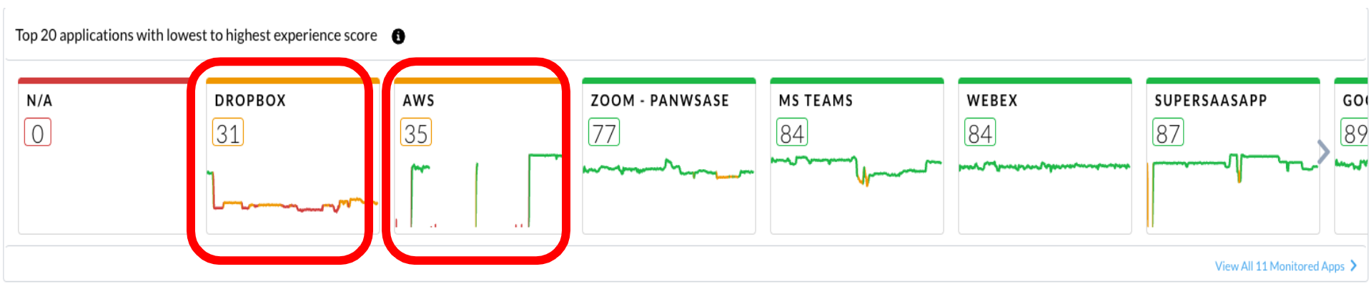 This API retrieves the top 20 applications with lowest to highest experience score.